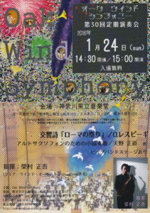 2016年1月24日(日) 開場14:30 開演15:00(予定) 入場無料