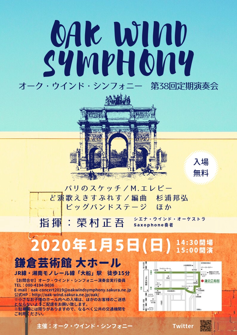 2020.1.5(日)14:30開場 15:00開演鎌倉市・鎌倉芸術館 大ホール♪ 北のオーロラ/ R.ガランテ♪ 日本民謡による幻想曲 〜「砂山」の主題による〜/S.R.ヘイゾ♪ パリのスケッチ/M.エレビー♪ スーパーカリフラジスティッ...